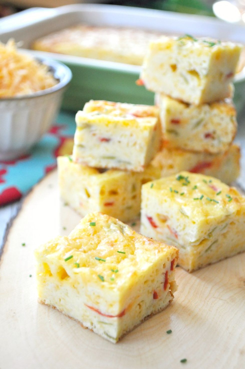 The perfect party appetizer or side dish, Aunt Bee’s Chile Cheese Squares are a simple make-ahead recipe that has been enjoyed for generations! These easy, bite-sized snacks take advantage of a baking mix for an easy, cheesy Southern treat that will disappear fast.