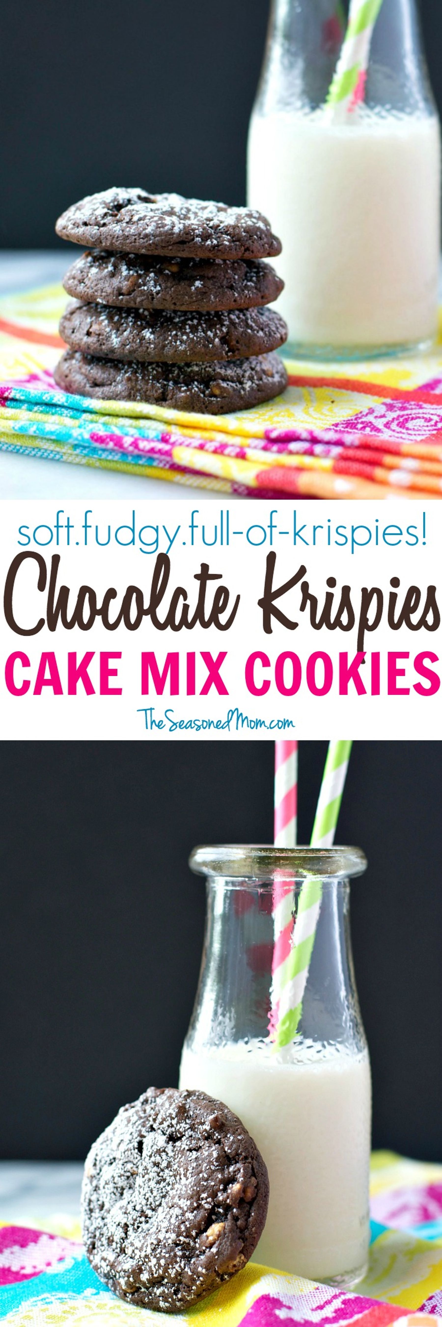 You only need 4 ingredients and 15 minutes to prepare Aunt Bee’s Chocolate Krispies Cake Mix Cookies! Soft and moist on the inside, this easy dessert recipe yields the perfect cross between a chocolate cookie and a rich, fudgy brownie!