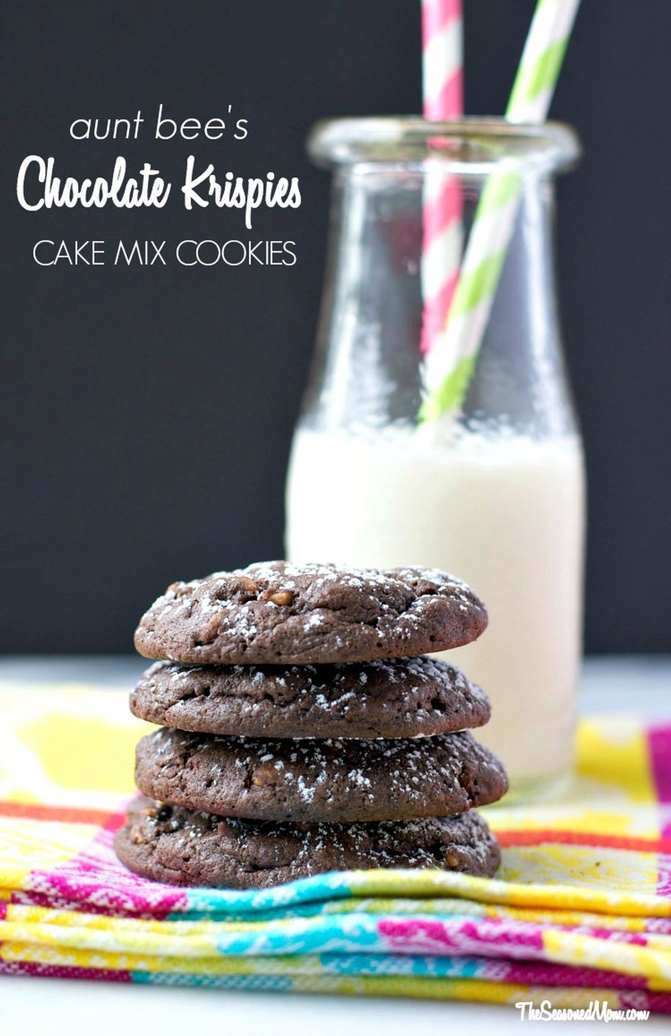 You only need 4 ingredients and 15 minutes to prepare Aunt Bee’s Chocolate Krispies Cake Mix Cookies! Soft and moist on the inside, this easy dessert recipe yields the perfect cross between a chocolate cookie and a rich, fudgy brownie!