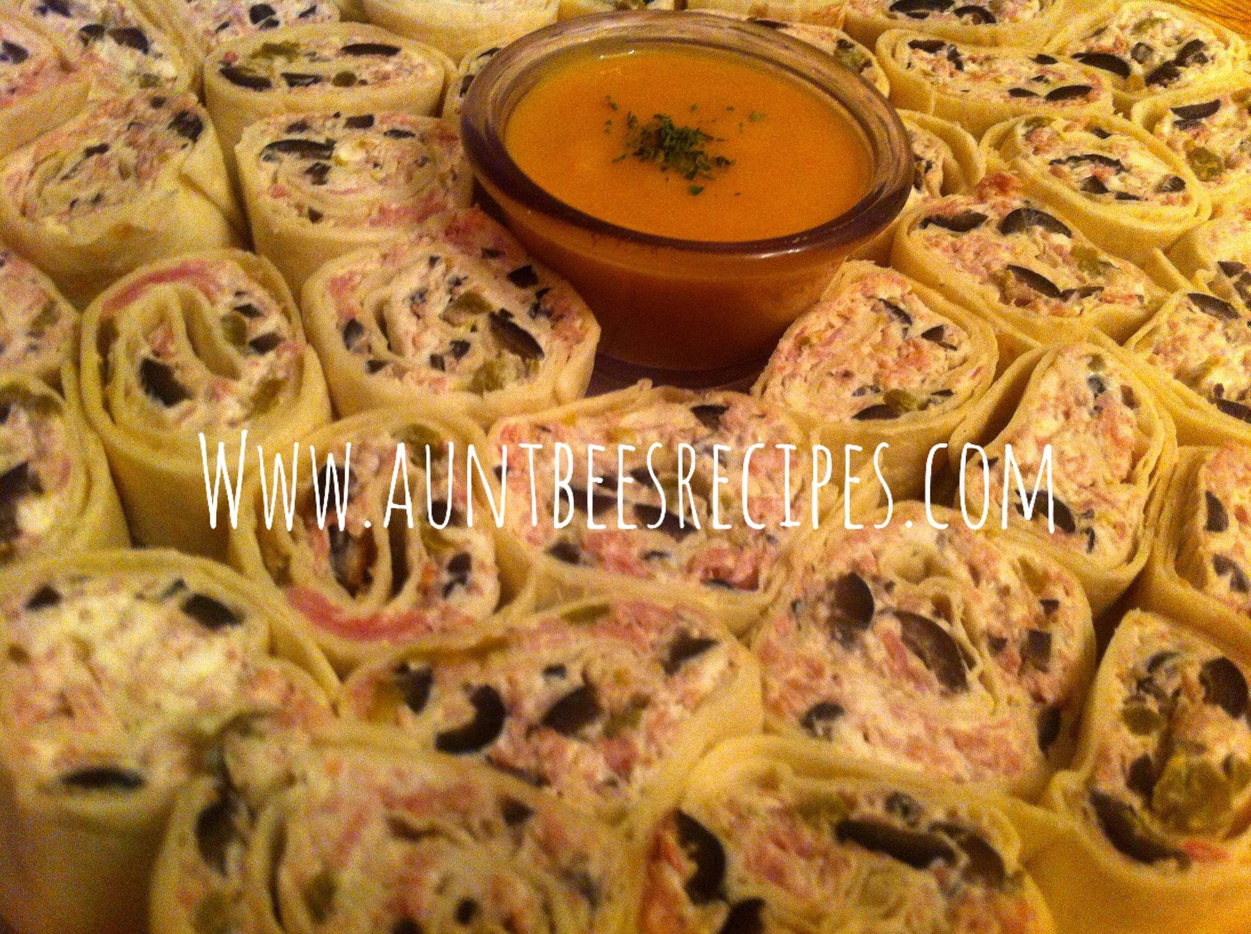 Aunt Bee's Zippy Ham Pinwheels with Homemade Mustard Dipping Sauce