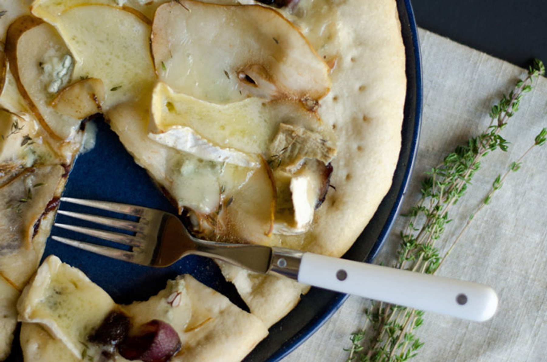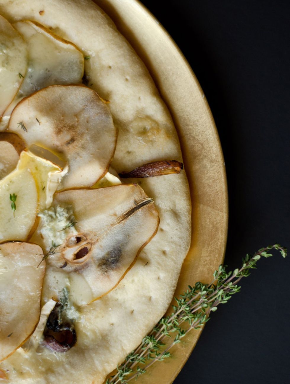 A delicious autumn combination of pears, brie, gorgonzola, and thyme