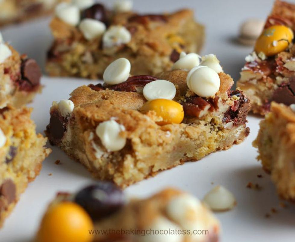 These gorgeous, buttery blondies are stuffed with white chocolate chips, crunchy pecans and the belle of the ball “Pecan Pie M&M’s”. Quite a dangerous. seductive combination, wouldn’t you say? But, oooohhh, SO WORTH IT!