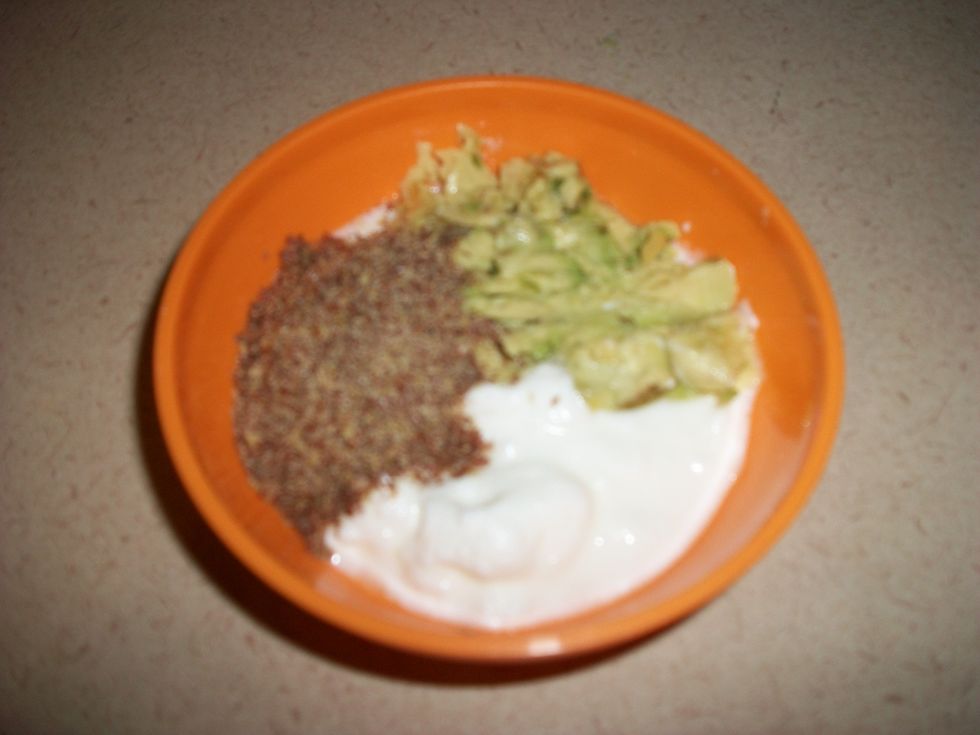 1/4 cup mashed avocado, I mash with a fork