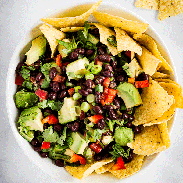 This Avocado Black Bean Salsa comes together quickly and is perfect for a party, potluck, bbq or any time you need something to justify eating more tortilla chips! Also tasty served with grilled chicken, shrimp, salmon, or pork chops!