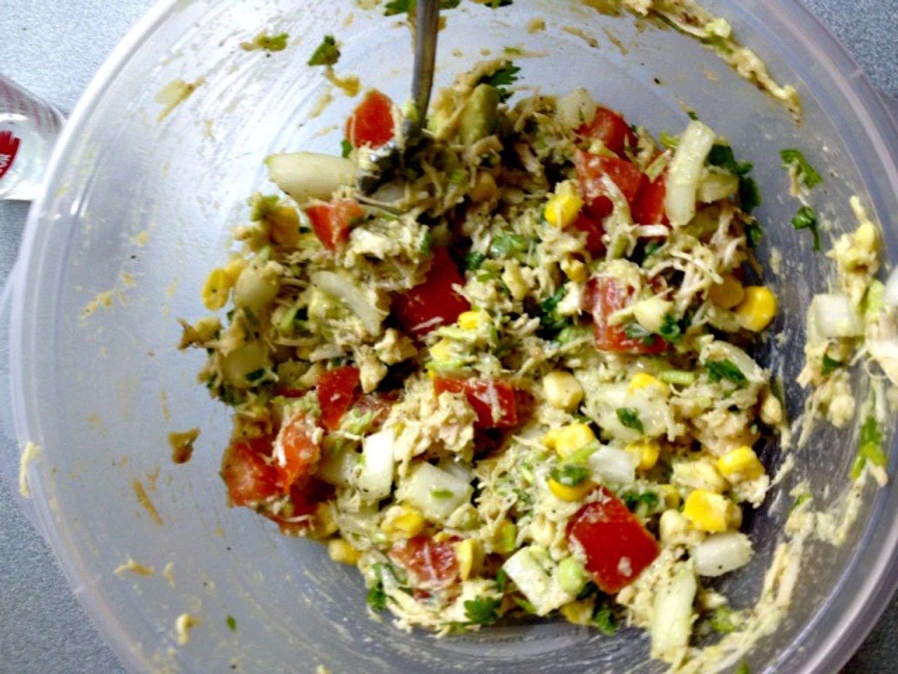 Healthy, delicious, and super easy chicken salad. Perfect for a BBQ, party, or snack. You can customize this recipe to include any veggies that you like, or take out the chicken for a yummy vegetarian dish!