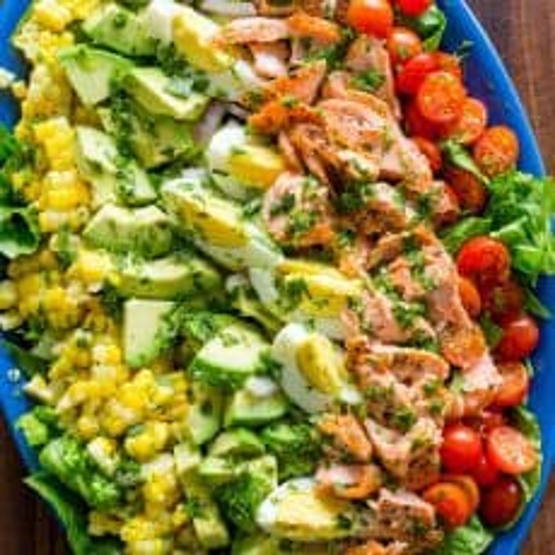 This Avocado Chicken Salad recipe is a keeper! Easy, excellent chicken salad with lemon dressing, plenty of avocado, irresistible bites of bacon and corn. No cooking required for this healthy Chicken Cucumber Avocado Salad.