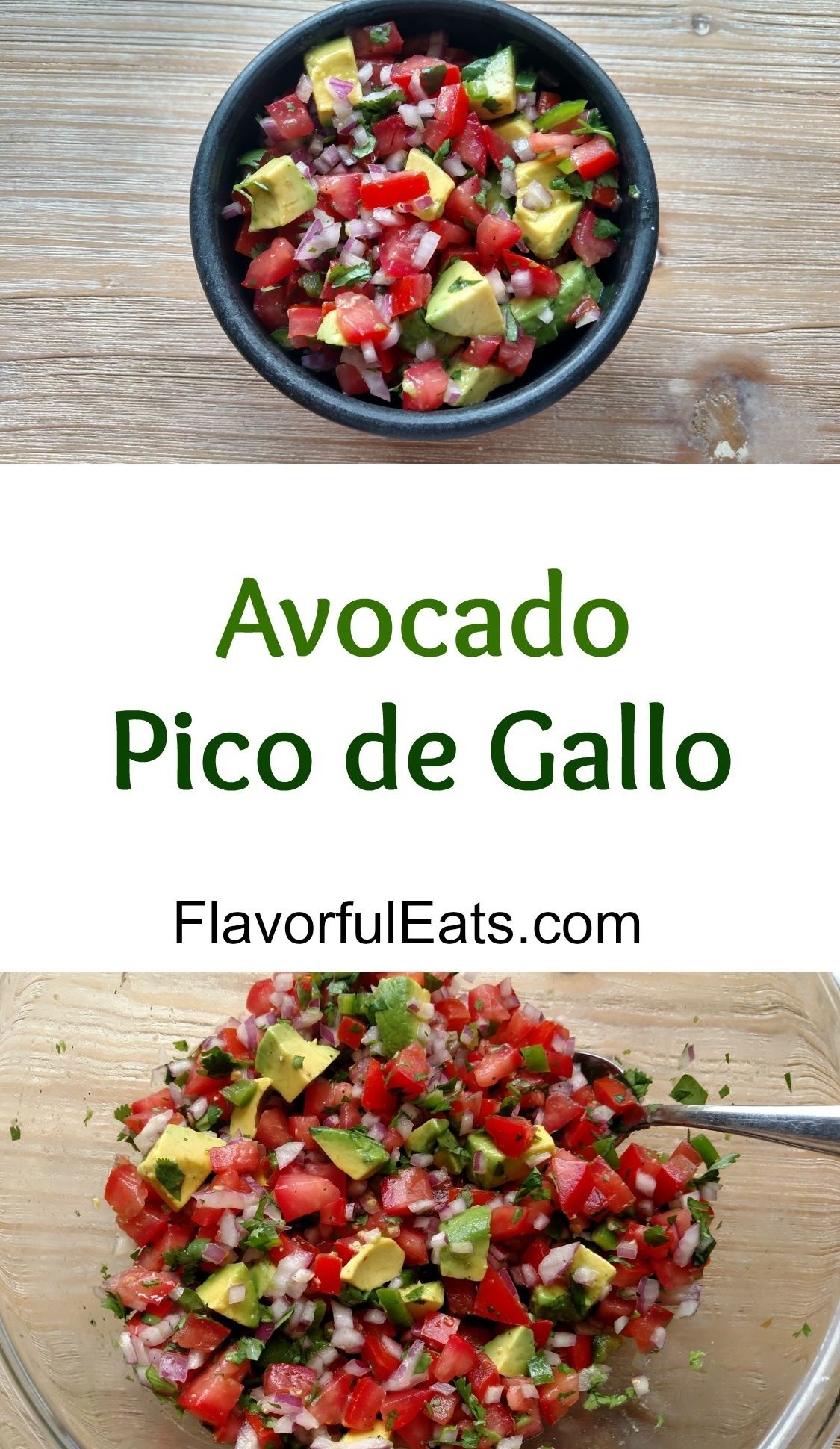 Avocado Pico de Gallo is the perfect addition to your Mexican meal! It adds chunks of creamy avocado to fresh pico de gallo for a great topping to tacos or a delicious sidekick to chips.