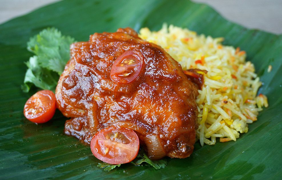 | Tomato Chicken Curry, or Ayam Masak Merah, is a favorite Malaysian. Fried chicken finished in a rich tomato and coconut milk curry sauce. |