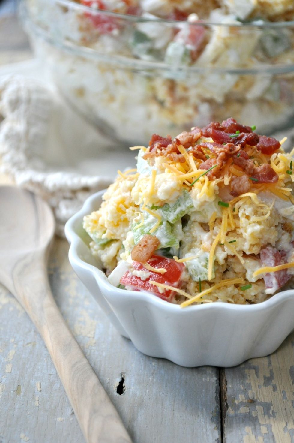 Bacon, cheese, and cornbread come together in a delicious, easy, make-ahead dish that is perfect for all of your warm weather gatherings! Bring this crowd-pleasing Bacon and Cheese Cornbread Salad to your next potluck, picnic, or cookout and it will disappear fast!