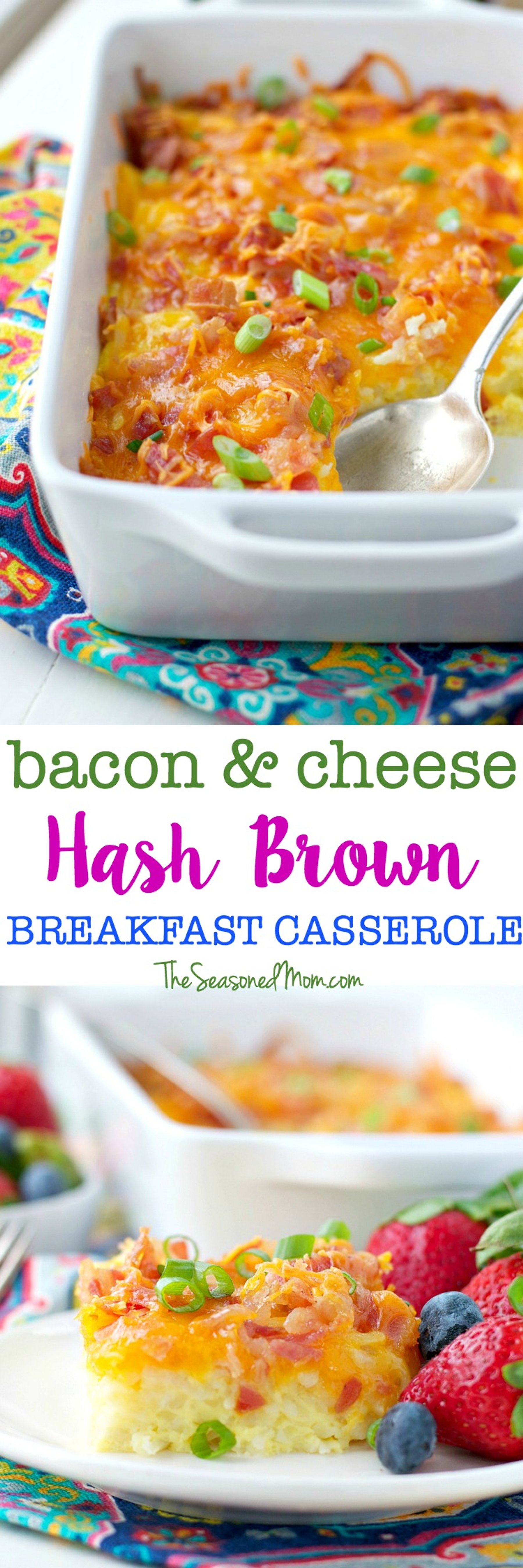 Host the ultimate holiday brunch or serve a comforting weeknight dinner…with just 10 minutes of prep! This easy Bacon and Cheese Hash Brown Breakfast Casserole is the perfect make-ahead egg dish for any occasion!