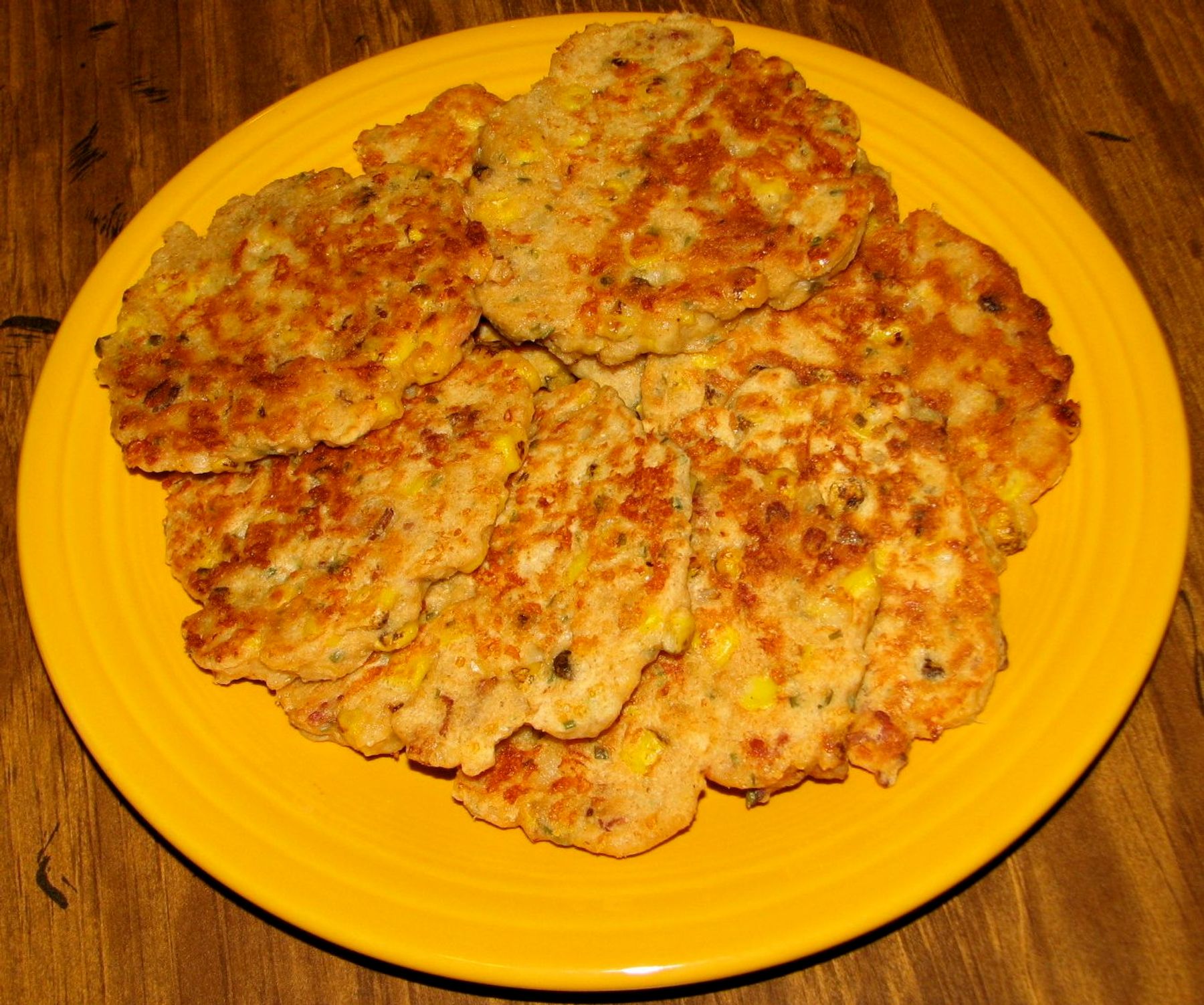 I love the combination of savory and sweet any time of the day but when it comes to breakfast it can't be beat! See, I have this problem. When I go out for breakfast I can never decide between bacon, eggs and a biscuit with gravy OR pancakes, waffles or crepes! This recipe solves that problem! The griddle cakes have bacon, chives and cheese for the savory component and corn and syrup for the sweet! The perfect breakfast bite! Enjoy!
