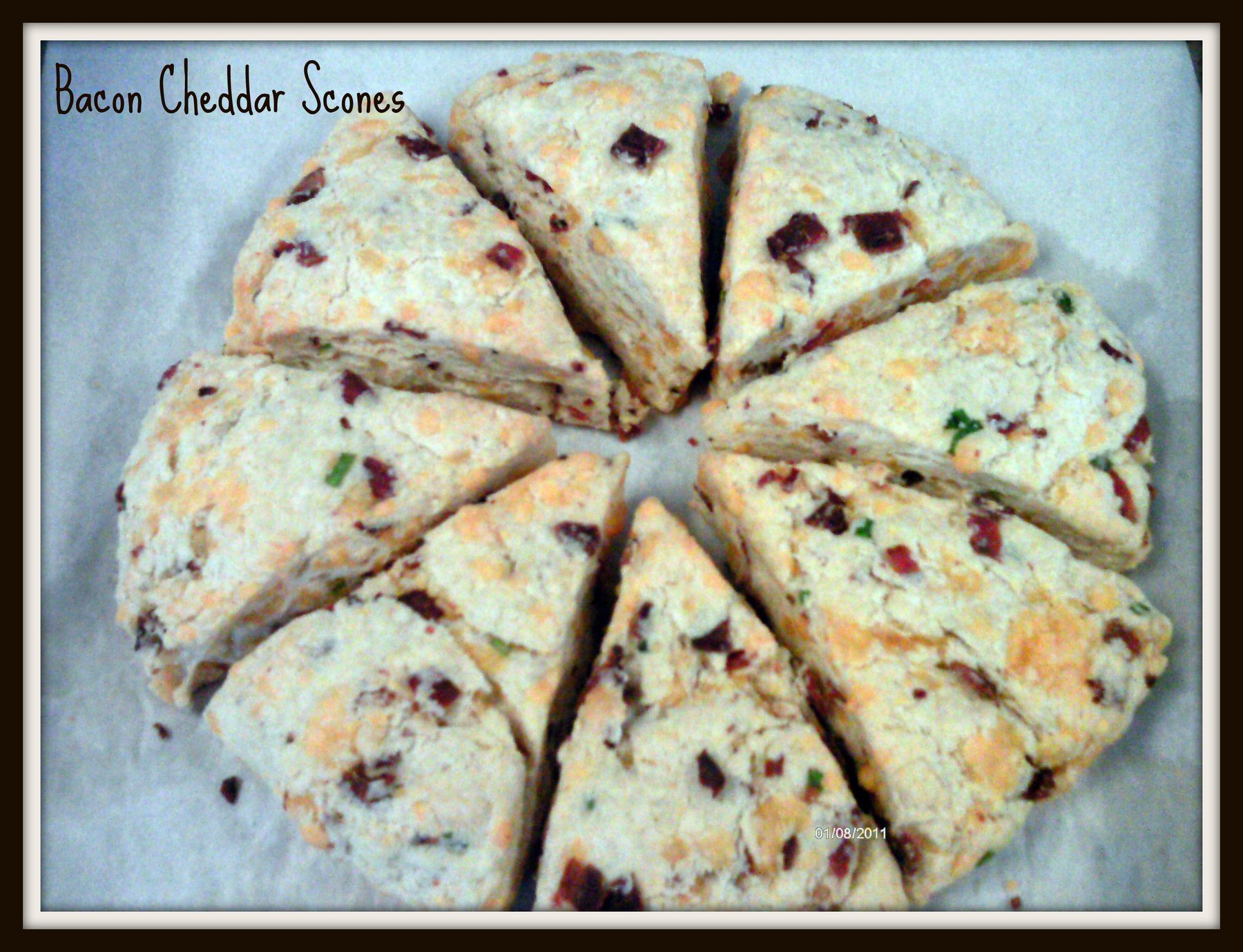 A delightful savory scone with sharp cheddar cheese and crisp bacon. Great with eggs done your favorite way.
