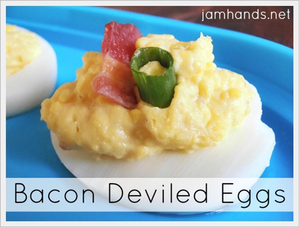 3. Mash yolks and mix in the bacon, cheese, green onion,...