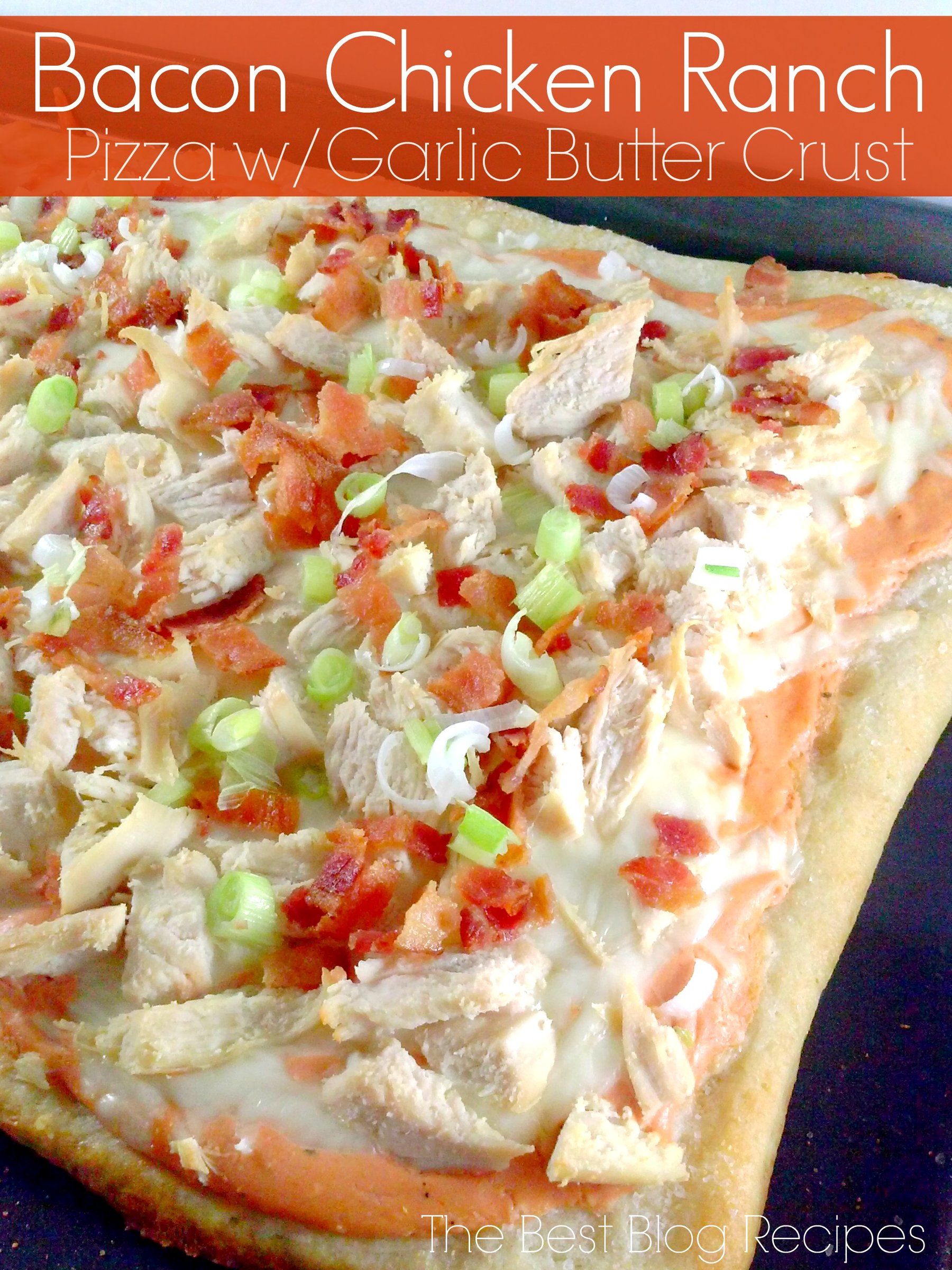 This Bacon Chicken Ranch Pizza is so easy to make and the entire family will love the garlic butter crust!