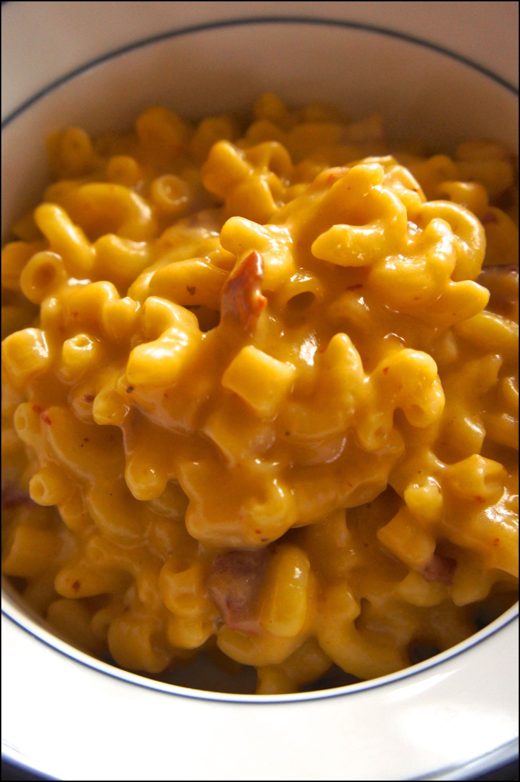Macaroni and cheese with a smokey flavor.