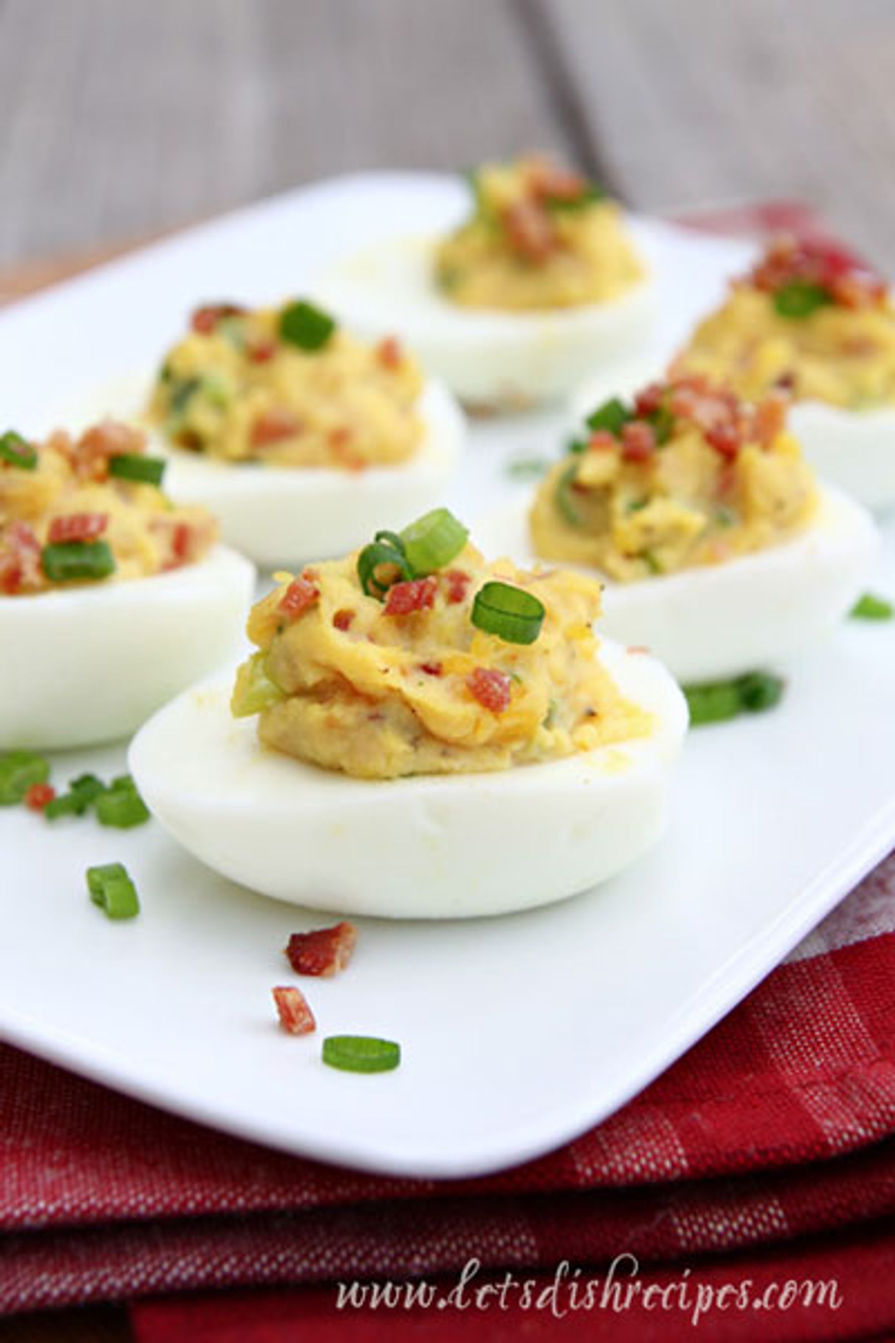 Slice the hard boiled eggs in half lengthwise and gently scoop the yolks into a medium bowl. Set aside the whites. Mash the yolks with a fork, then stir in the mayonnaise, green onions, Dijon mustard,...
