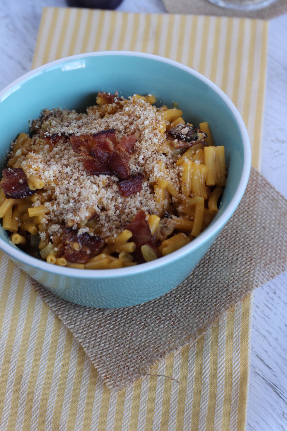 A glorified version of your traditional Mac 'n Cheese, but this time with bacon, green chiles, and Parmesan bread crumbs,