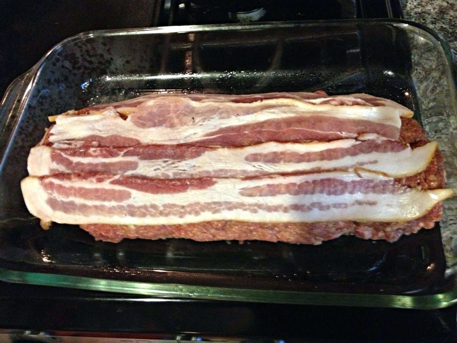 Topped with bacon, this meatloaf is a crowd pleaser and a sure hit with the family. Sneak in some veggies and they won't even know it is healthy too!