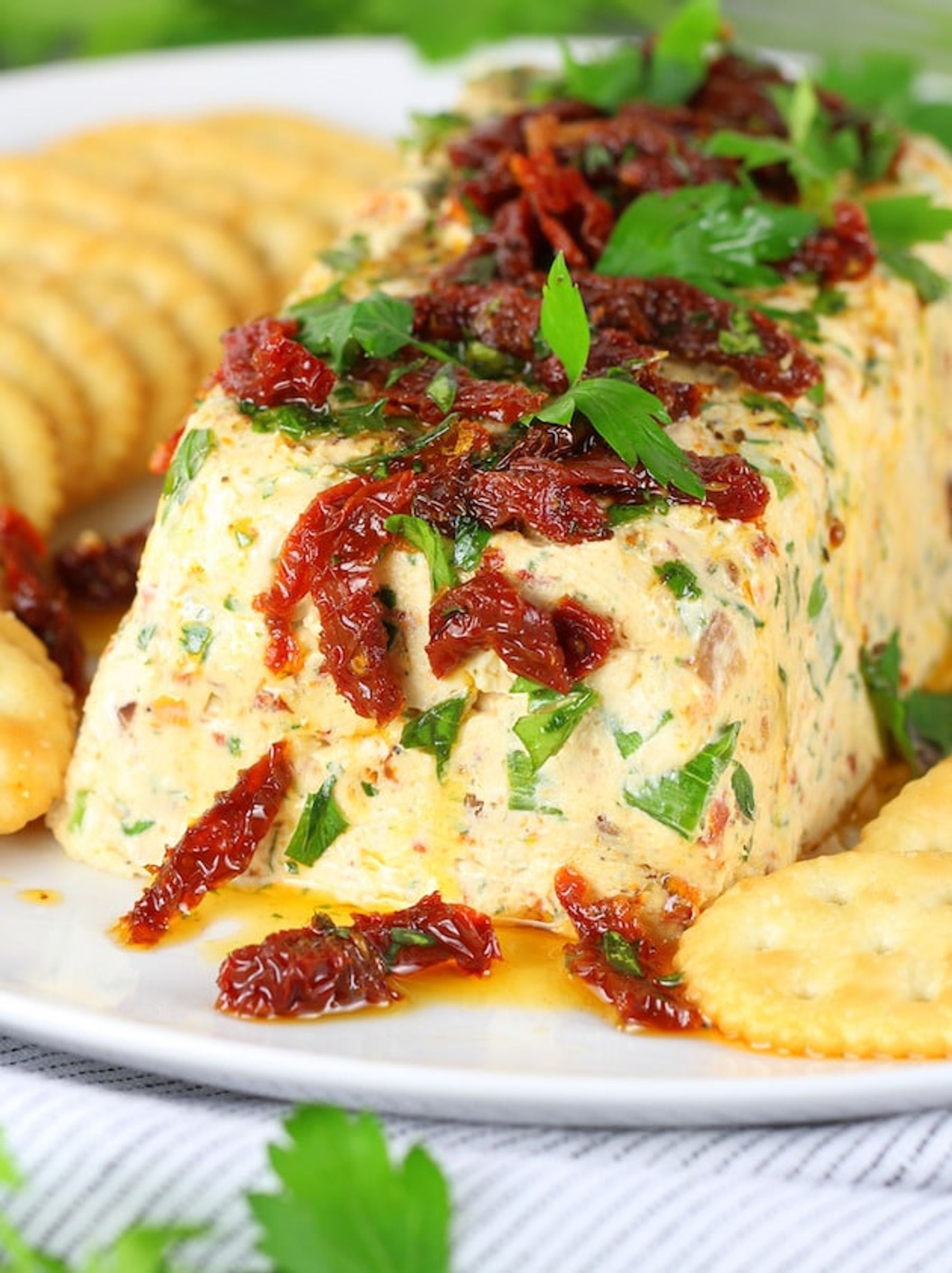 Quick, easy, and delicious… perfect for any festive celebration! With ranch seasoning, cream cheese, sour cream, parsley, green onions, sun-dried tomatoes and cooked bacon - what's not to love!?