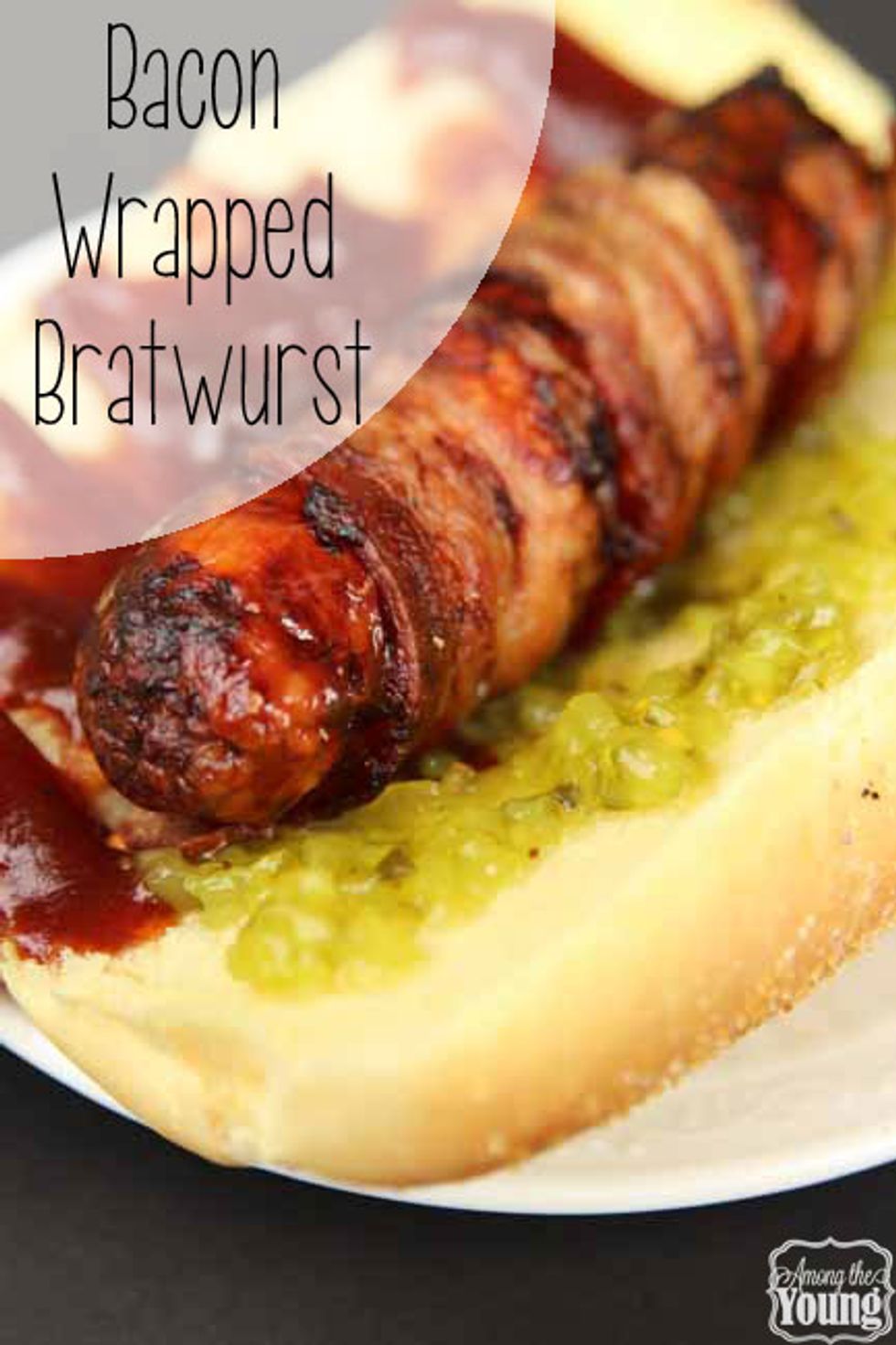 Simple : Bratwurst wrapped in bacon and smothered in your favorite sauces. EASY!