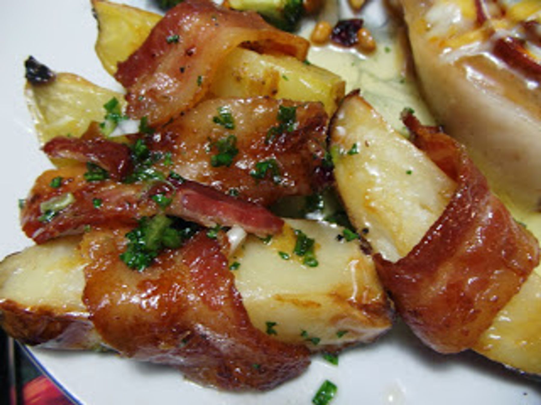 Bacon Wrapped Potato Wedges with Honey Sauce