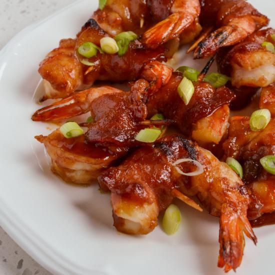 An easy to make appetizer recipe that is always a hit with family and friends. The slightly spicy sweet Asian sauce takes these Bacon Wrapped Shrimp off the charts.