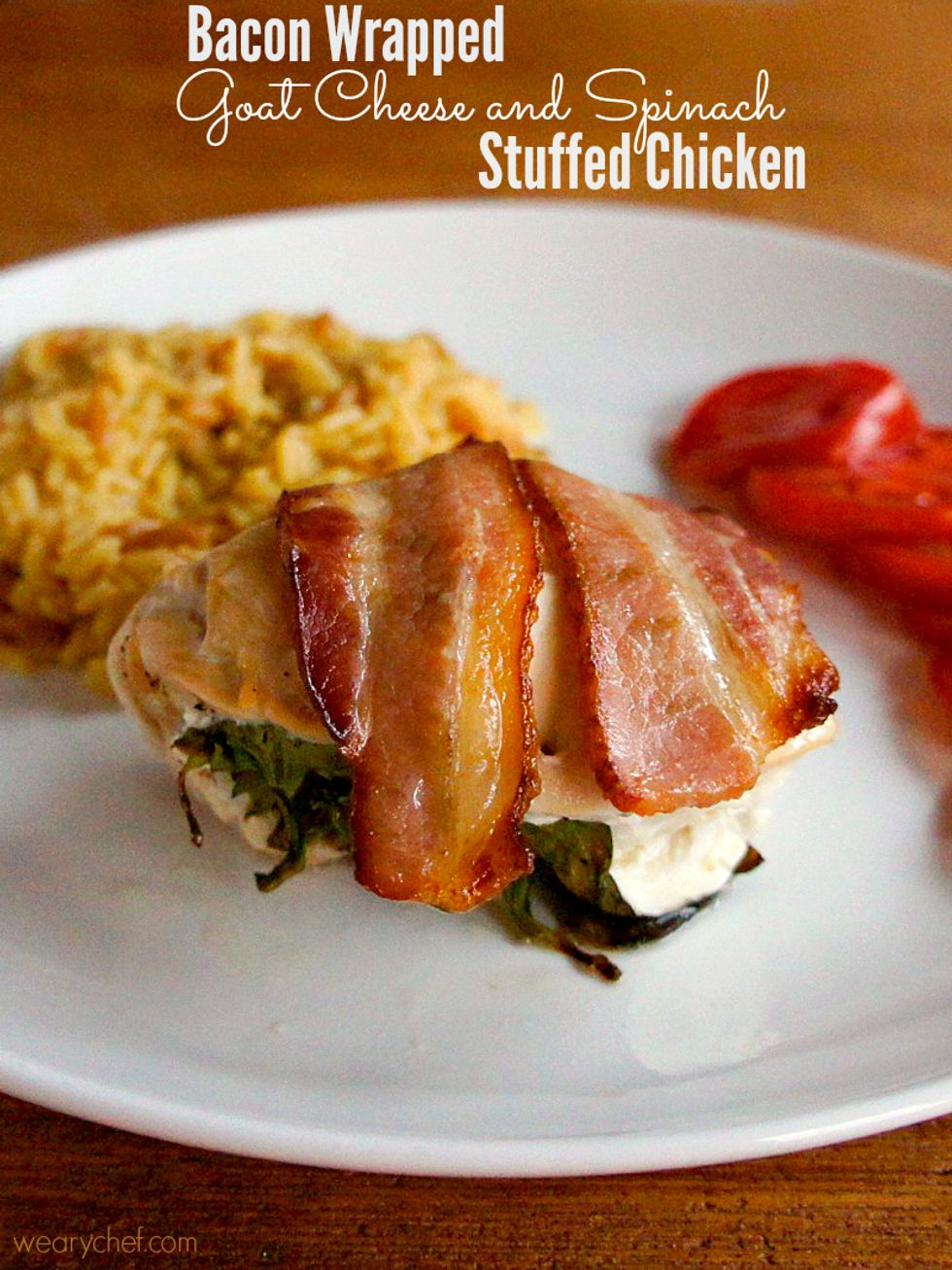 These Bacon Wrapped Stuffed Chicken Breasts with spinach and goat cheese look fancy but are actually pretty easy to make.