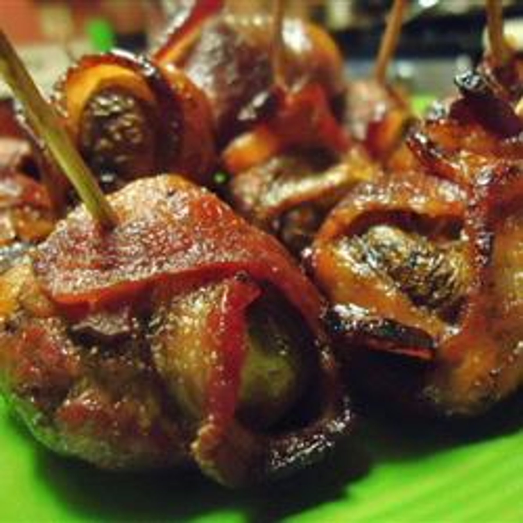 A classic favorite stuffed mushroom is taken to new heights by wrapping in a slice of bacon. Simple, but will melt in your mouth!