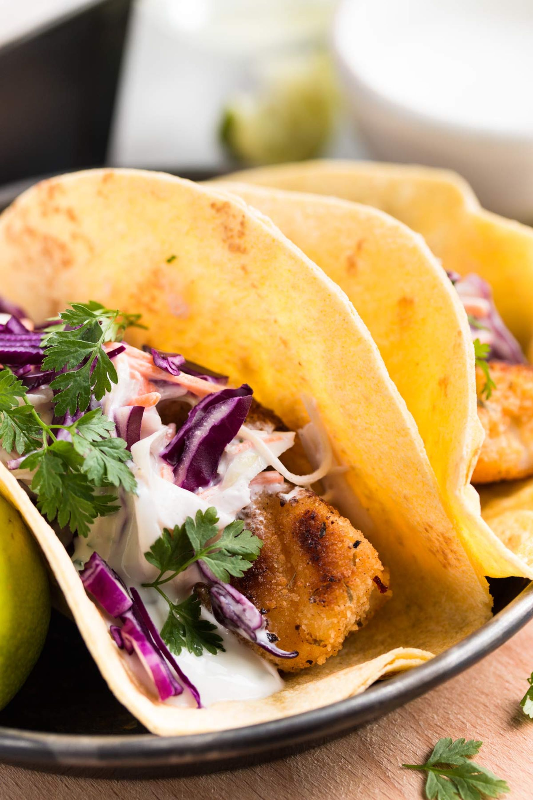 Baja Fish Tacos with Creamy Cilantro Lime Slaw