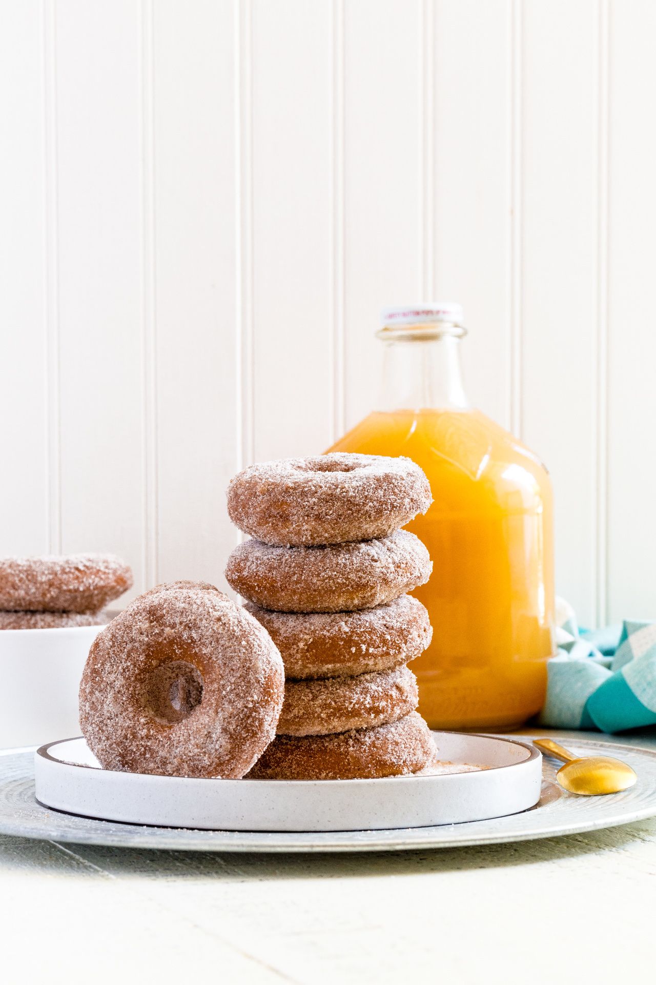 This classic apple cider donut recipe boasts the irresistible flavor of donuts sold at apple-orchard bakery stands. Brushed with butter, and sprinkled with cinnamon sugar, they're light and flavorful with the perfect crumb!