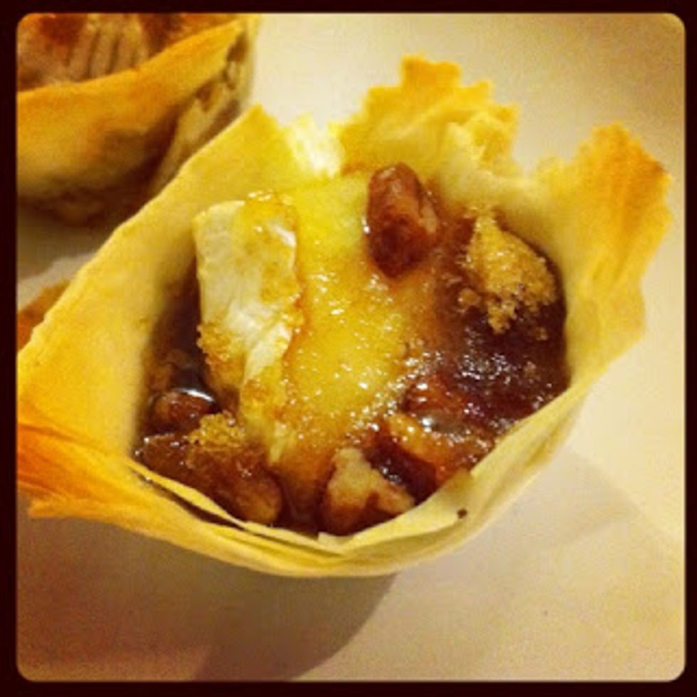 My favorite bake brie appetizer in bite sized form! The perfect combo of brie, brown sugar, honey and pecans in a miniature phyllo dough shell.