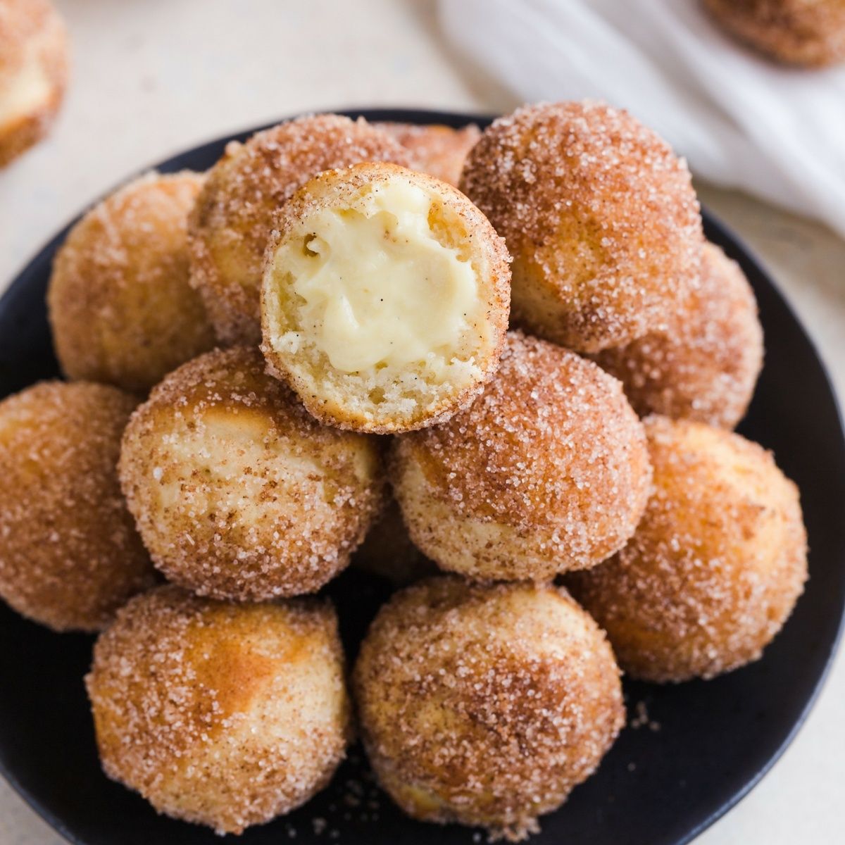 Baked Bunuelos with Anise Filling are a fun spin on the traditional bunuelos found all throughout Spain and Latin America. They consist of balls of dough that are baked instead of fried then filled with anise custard and rolled in cinnamon sugar.