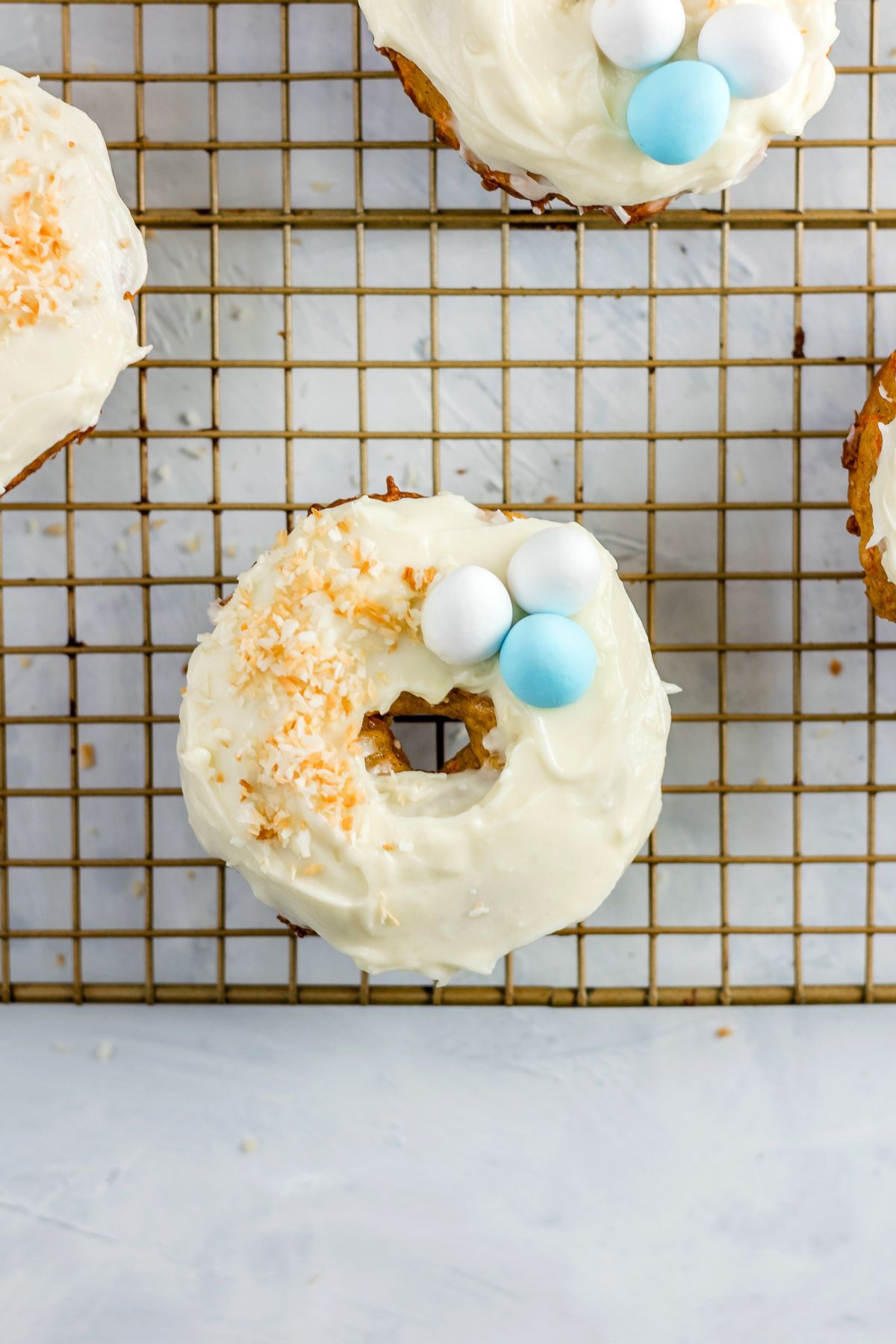 These irresistible baked Carrot Cake Donuts with Cream Cheese Frosting are so easy to make and are perfect for an Easter or spring brunch!