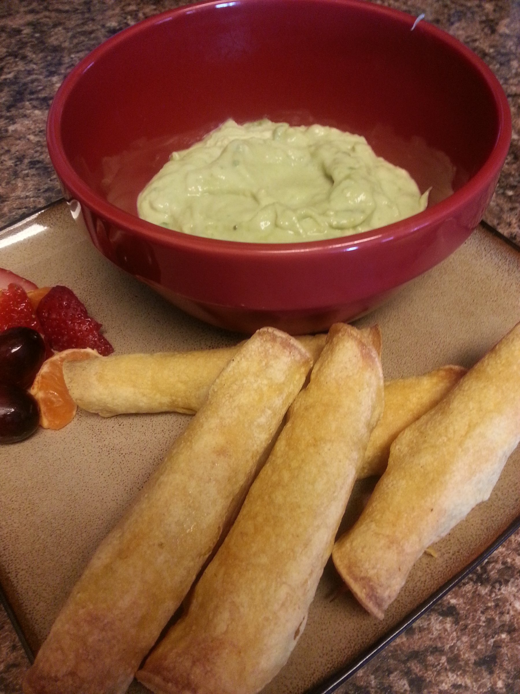 Baked Chicken Taquitos with Avocado Dip