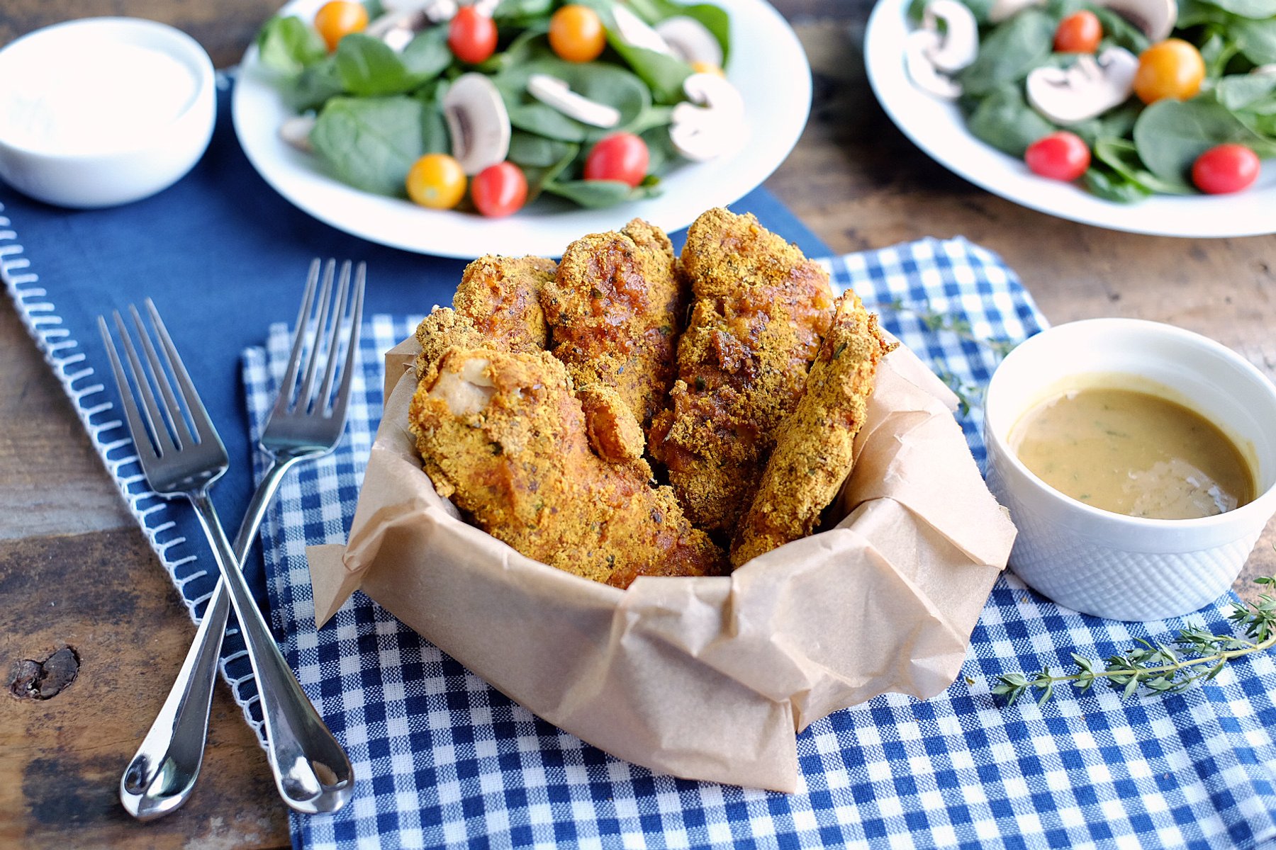 Chicken tenders are great for lots of reasons, and we love them because you can easily switch up the flavors by using different spices and you can also experiment with different dipping sauces to go with them. The best part though is if you bake them just right, they come out of the oven a little crispy on the outside, tender on the inside and oh so delicious.