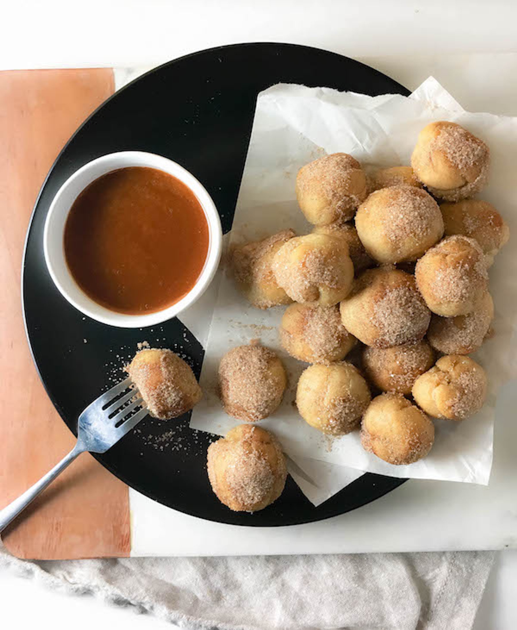 Baked Churro Bites with Homemade Dulce de Leche - this classic Mexican treat is made healthier by baking instead of frying it.