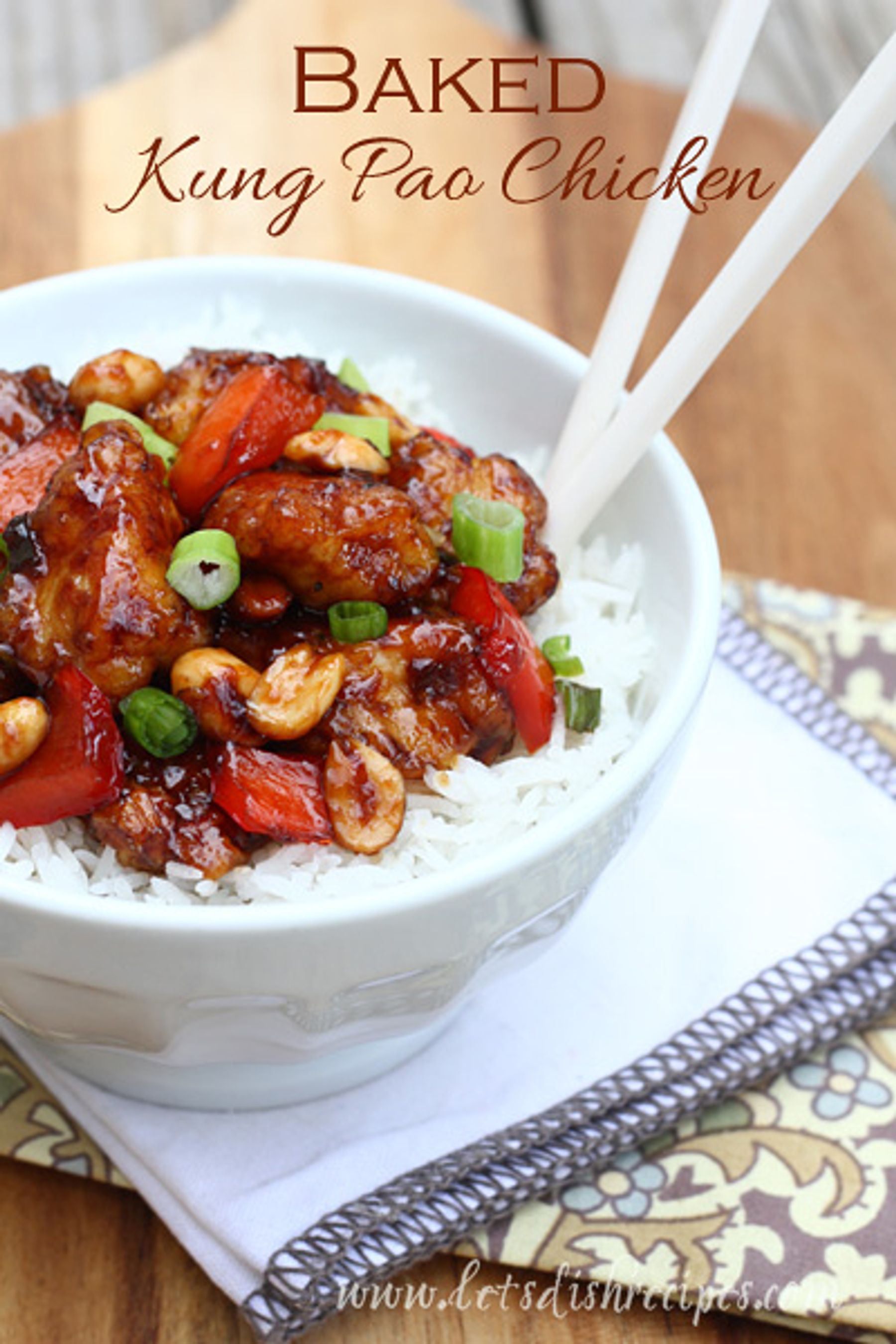 Take-out style Kung Pao Chicken with peanuts and peppers, baked instead of fried!