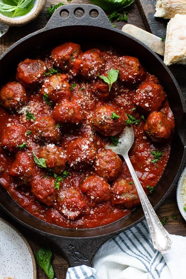 These easy baked meatballs are perfect for busy weeknights! Instead of standing at the stove to pan-fry meatballs in batches, you can pop them right into the oven for just 10 minutes. Whip up a made-from-scratch marinara sauce while the meatballs bake, and dinner is ready! Serve the baked Italian meatballs on their own with crusty bread, tossed with spaghetti, or stuffed inside sub rolls.