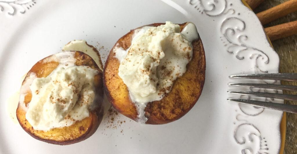 You will love this Baked Peaches with Balsamic Glaze and Whipped Cream recipe! It is an easy dessert to make but so tasty. The natural sugars combined with the Balsamic Glaze are truly a delicious combination.