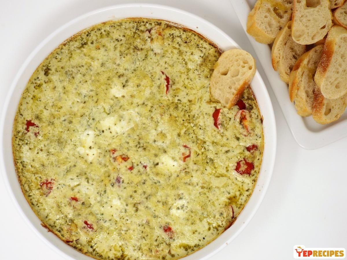 Baked Pesto Caprese Dip YepRecipesAugust 22, 2019 77 A hot and cheesy pesto dip with cherry tomatoes and three types of cheese.1. Preheat oven to 400°F...See the full directions on my site
