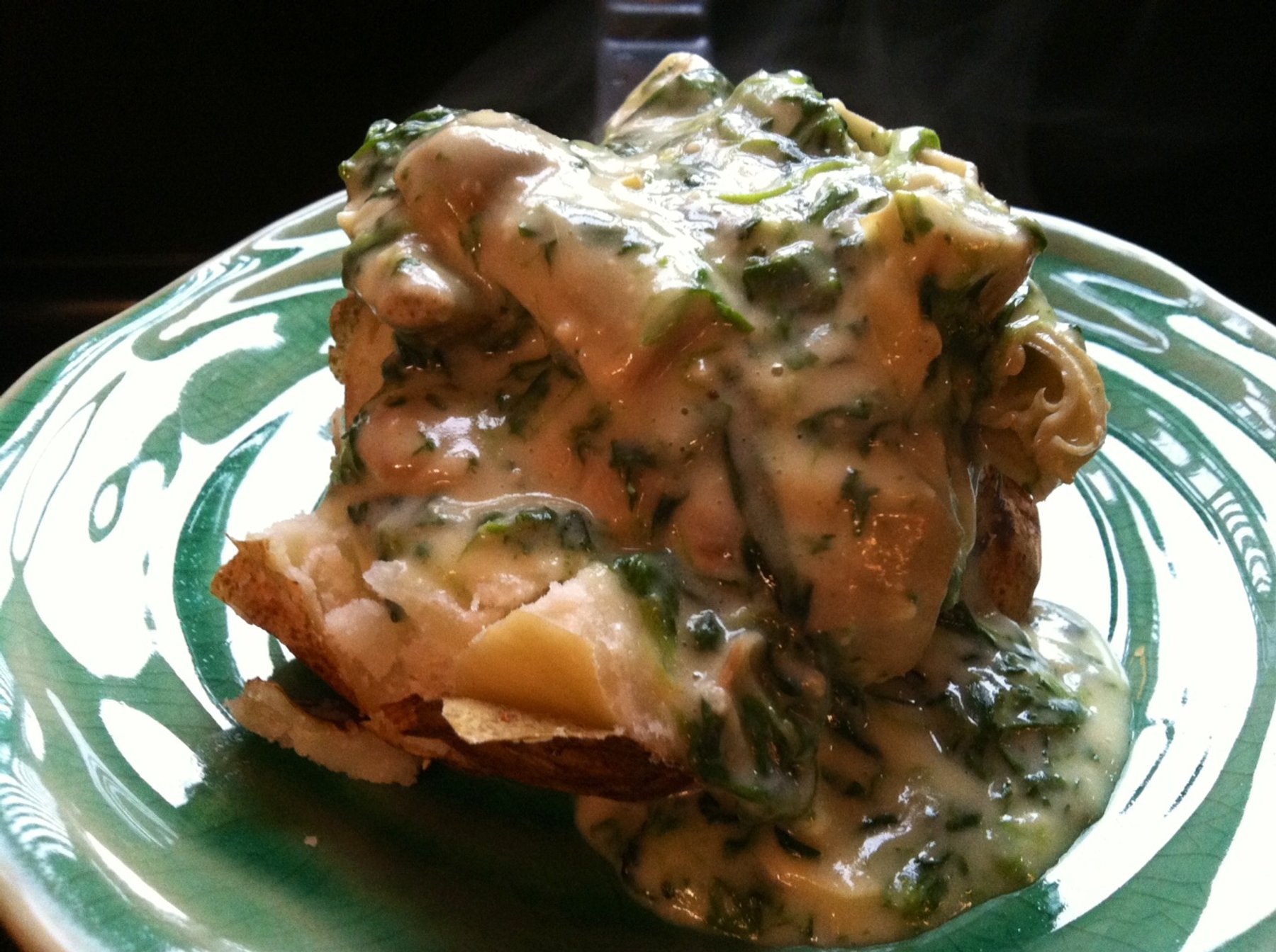 Baked Potatoes Smothered with Spinach Artichoke Sauce