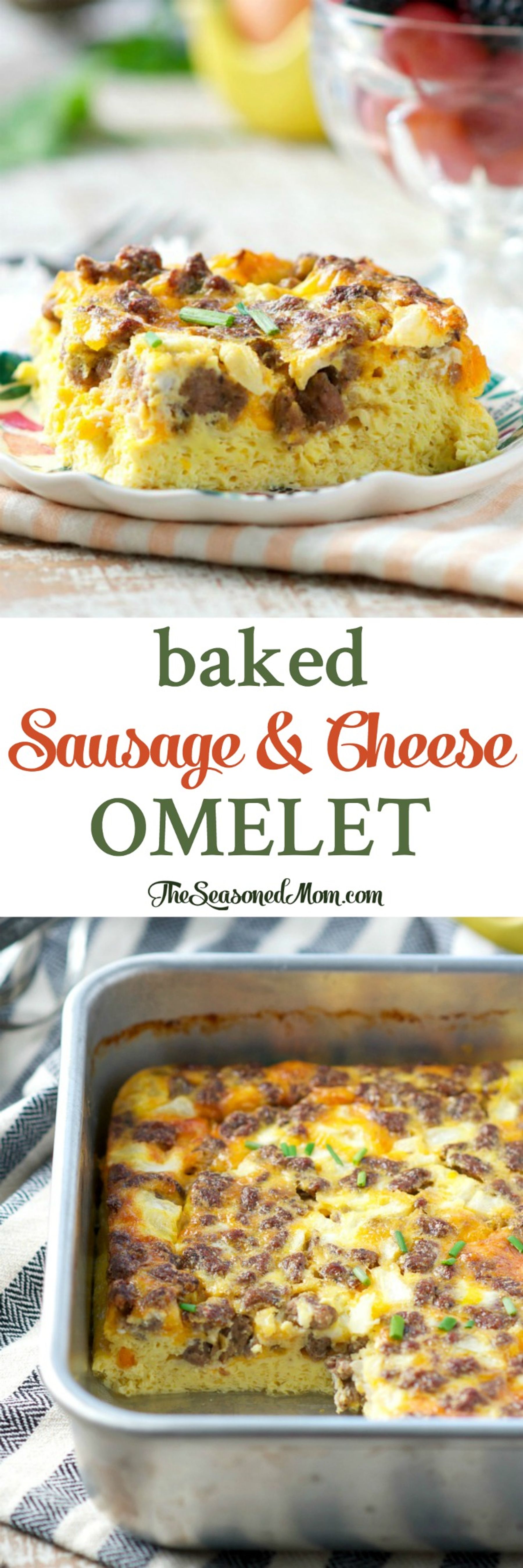 This Baked Sausage and Cheese Omelet is an easy breakfast casserole that only requires 5 minutes of prep!