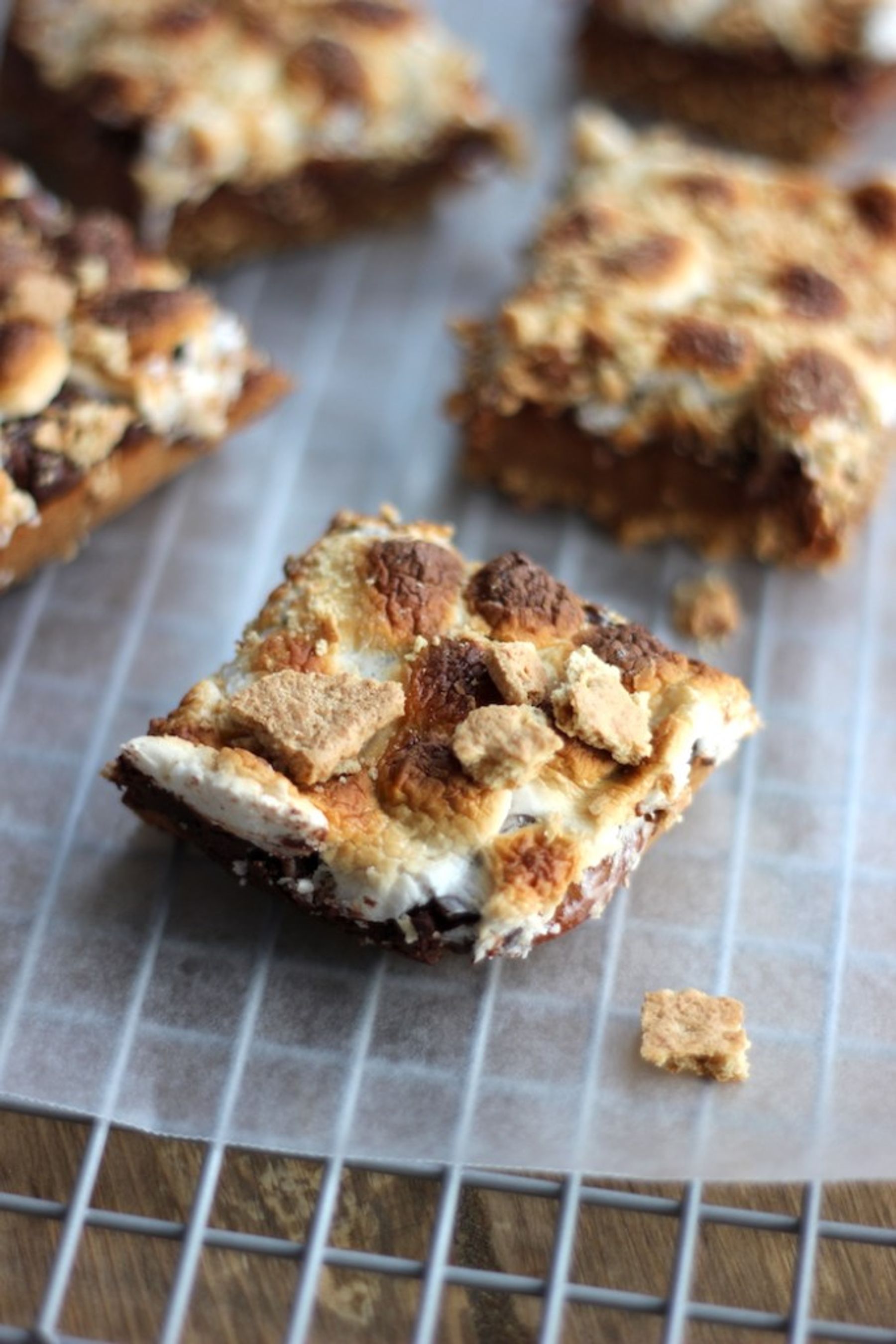 A graham cracker cookie topped with a layer of melted chocolate and perfectly toasted marshmallows. Who said s\\\'mores are only for summer?