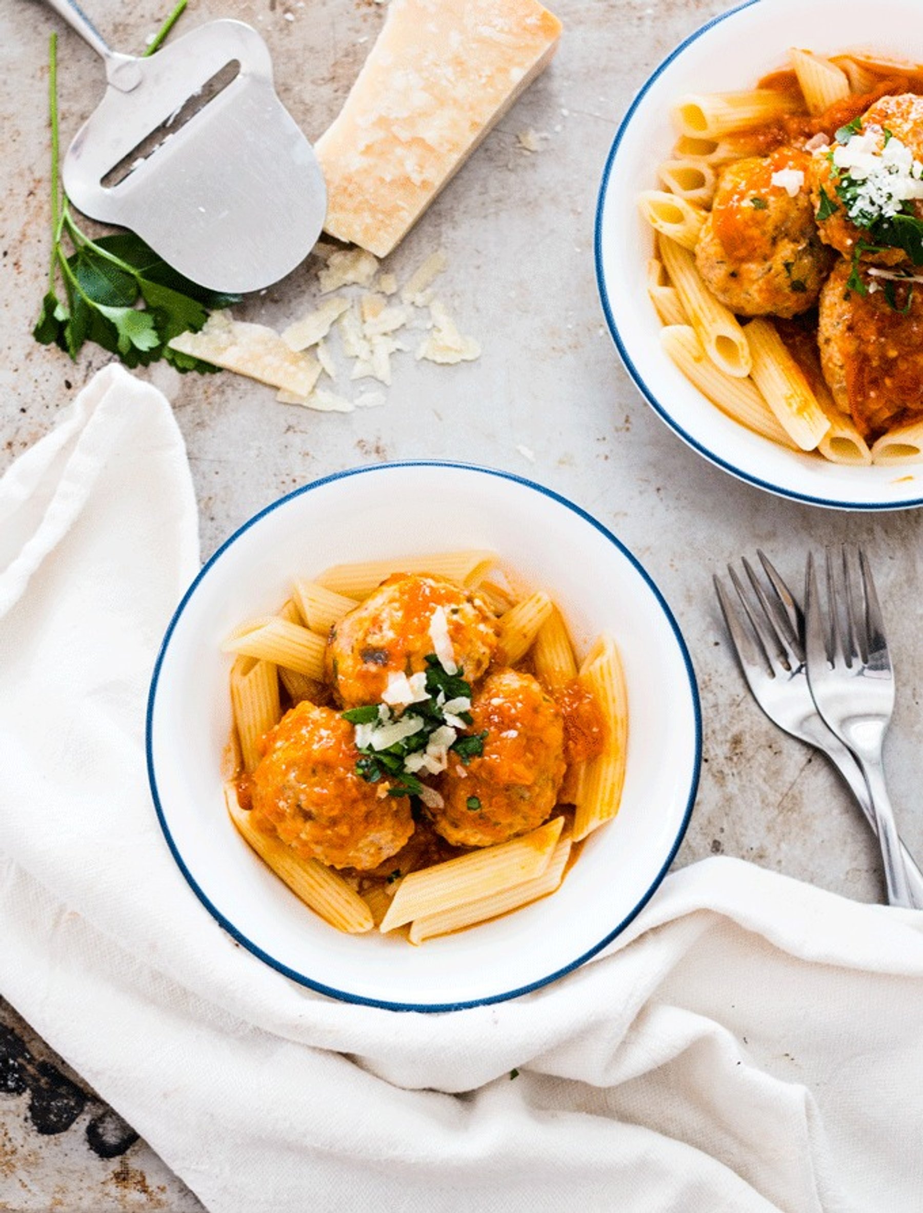 Light and fluffy, these baked turkey and ricotta meatballs are simply delicious. Pair with homemade tomato sauce and some pasta and enjoy