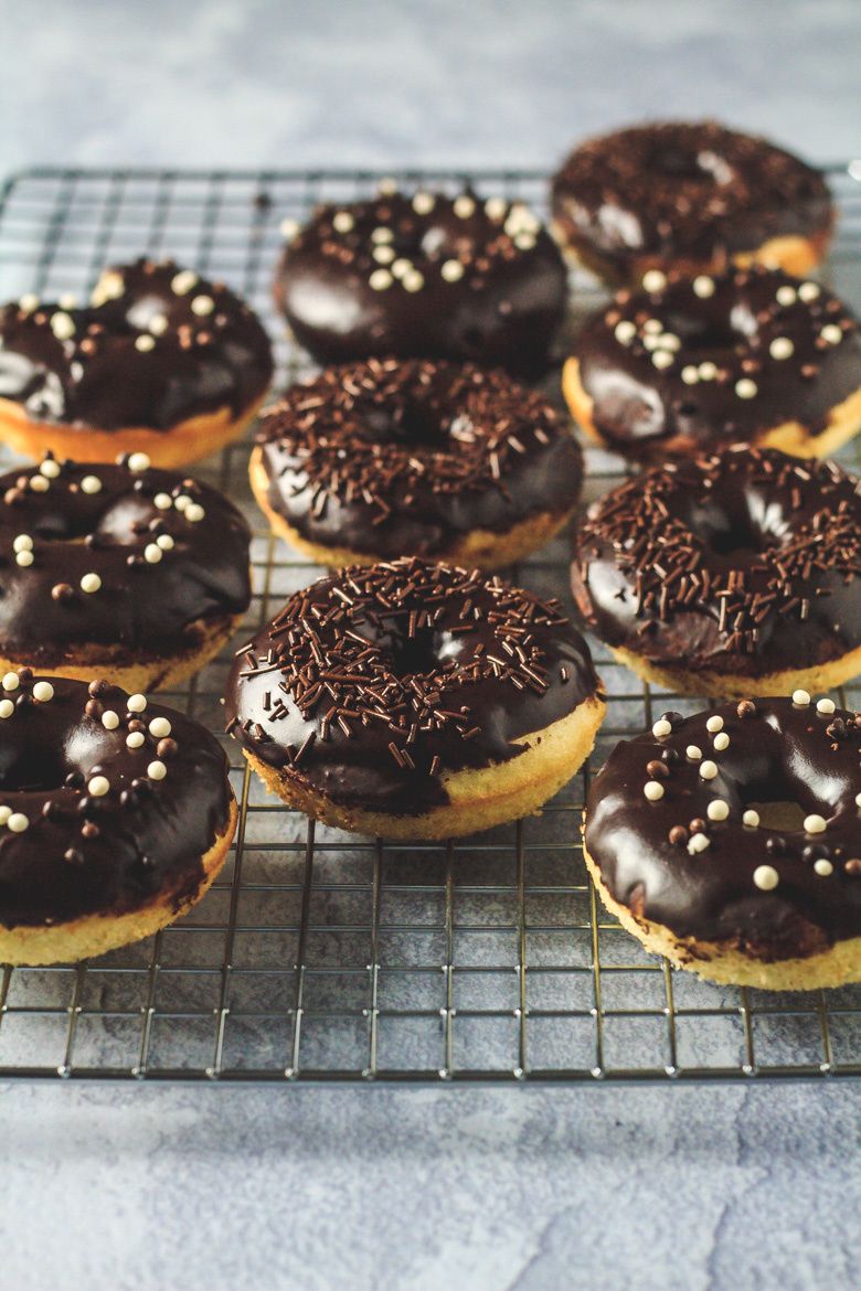 Deliciously moist and fluffy doughnuts that are BAKED, not fried, infused with vanilla, and topped with a thick chocolate glaze!