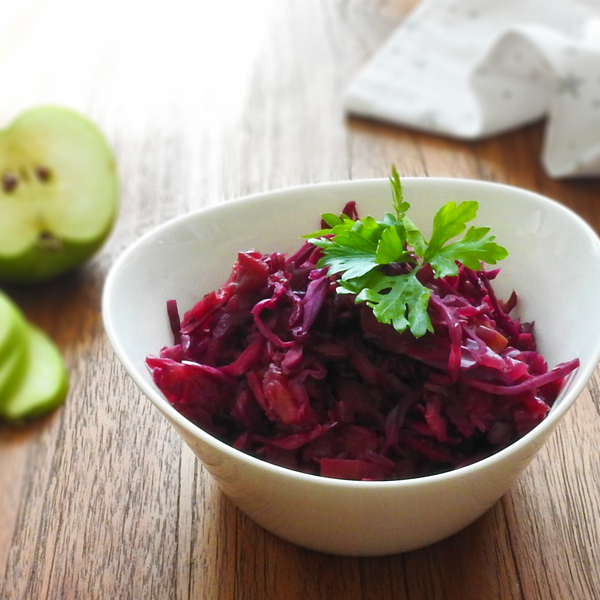 Balsamic Braised Cabbage – A tangy twist on this classic side dish that is sure to add a pop of colour and flavour to your dinner table! Served with apple for extra crunch, this slow cooked side will complement many dishes – in particular a good roast chicken.