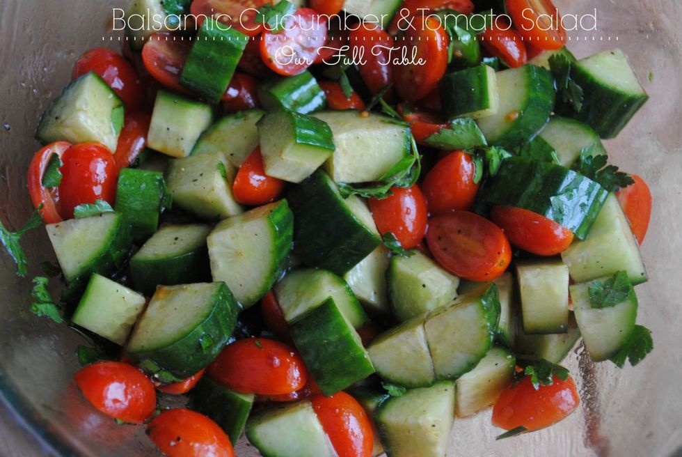 The perfect salad for summer. Juicy grape tomatoes and crisp english cucumbers make for the perfect pair when smothered in balsamic vinegar.