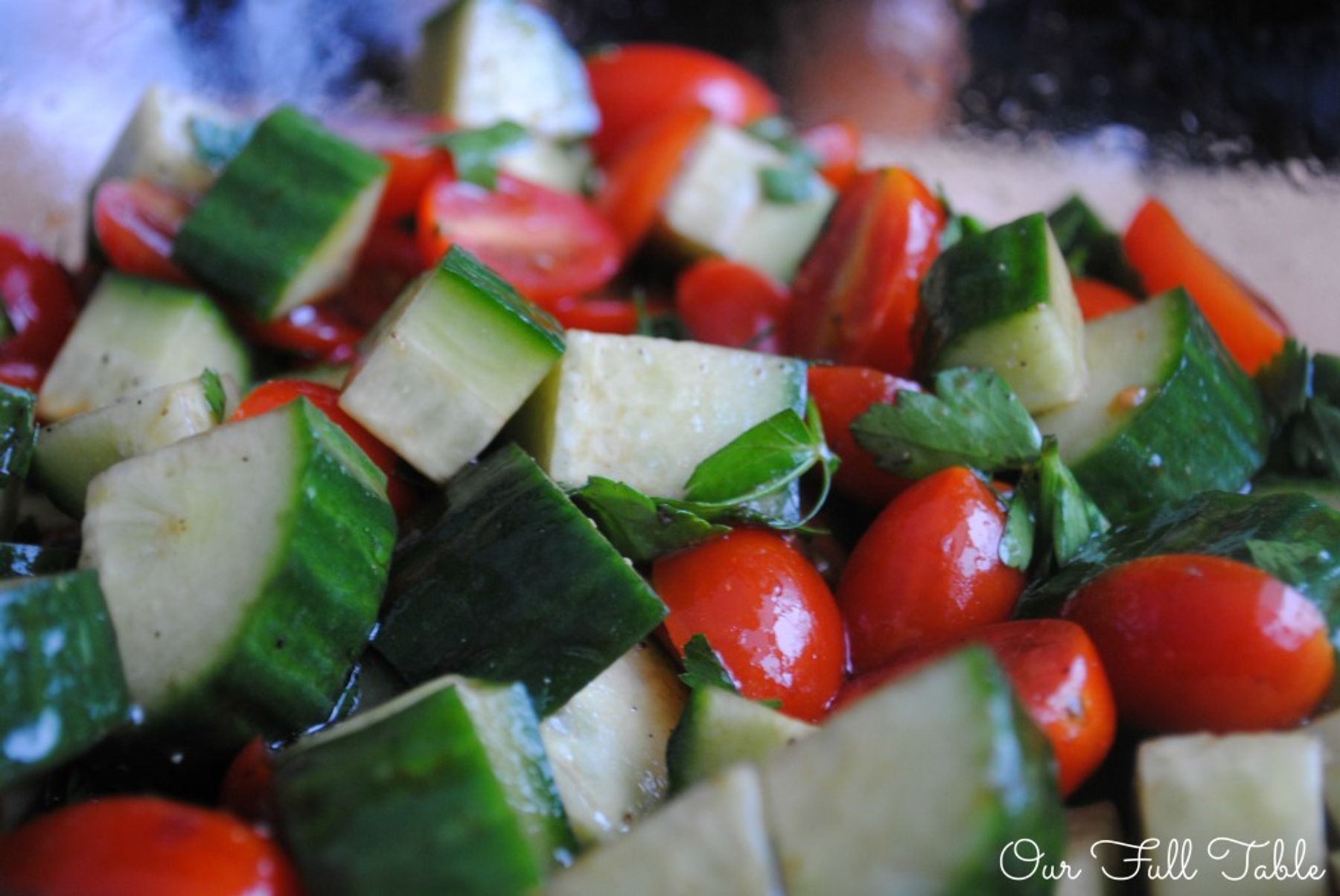 The perfect salad for summer. Juicy grape tomatoes and crisp english cucumbers make for the perfect pair when smothered in balsamic vinegar.