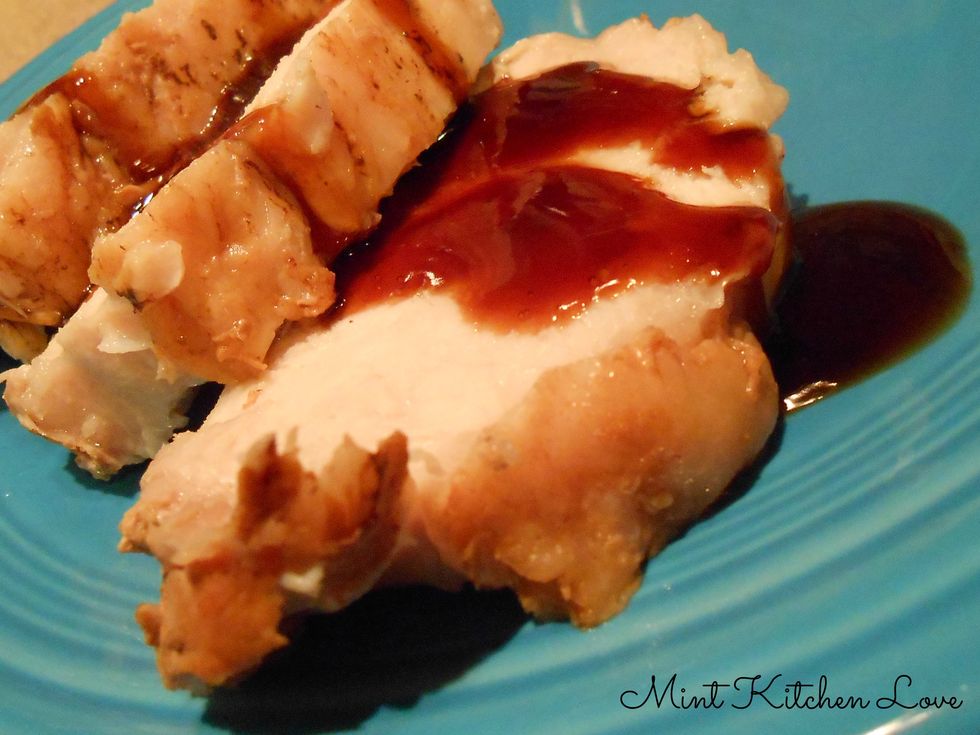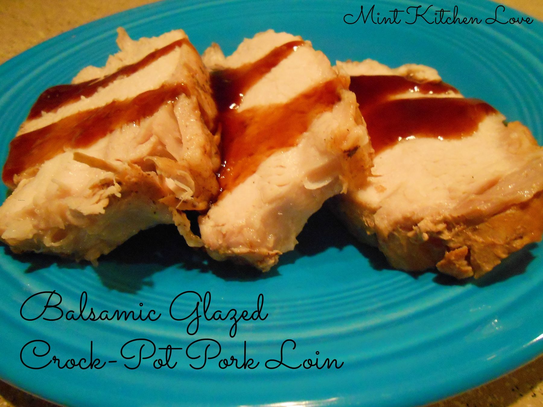Tender pork loin, cooked in the Crock-Pot with vegetables, and covered with a balsamic glaze.