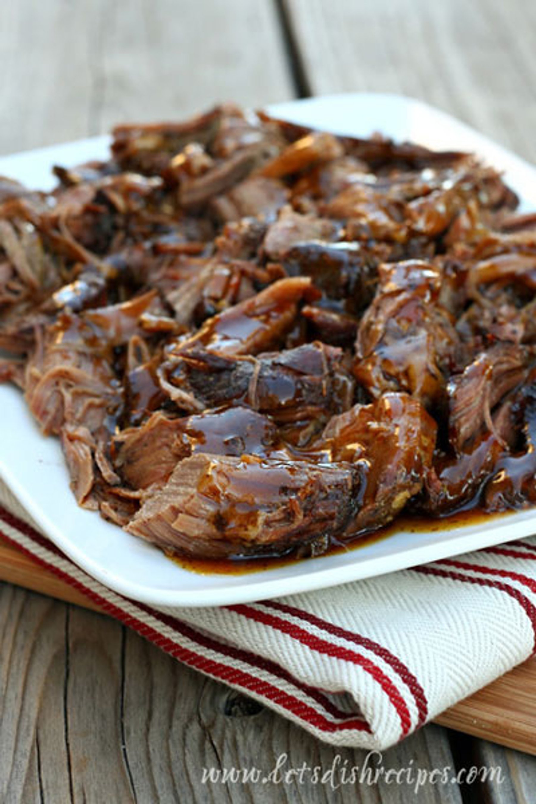 Slow cooked roast beef with a balsamic glaze.